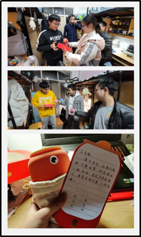 临近考研几天里,学院为每一位18级考研同学准备了十分用心的“锦鲤”暖水袋,各班级也为班内考研同学用心准备了橙子、旺仔牛奶等礼物,希望可以通过赠送“锦鲤”、“心想事成“等,送出他们的祝福——万事胜意、超常发挥、考研成功,也让考研同学感受温暖、舒缓压力。同时,学院老师、低年级学弟学妹们也各自撰写了祝福语,为考研的同学们加油打气,希望考研的同学们都能得偿所愿,成功上岸。