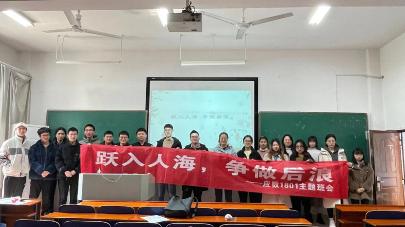 又是一年开学季,冬日的脚步尚未远去,同学们已经回到了校园。新学期,新气象。为更好地总结上学期的学习生活,迎接新学期的到来,应数1801班于2月27日由班长陈兆阳主持召开“越入人海,争做后浪”主题班会。