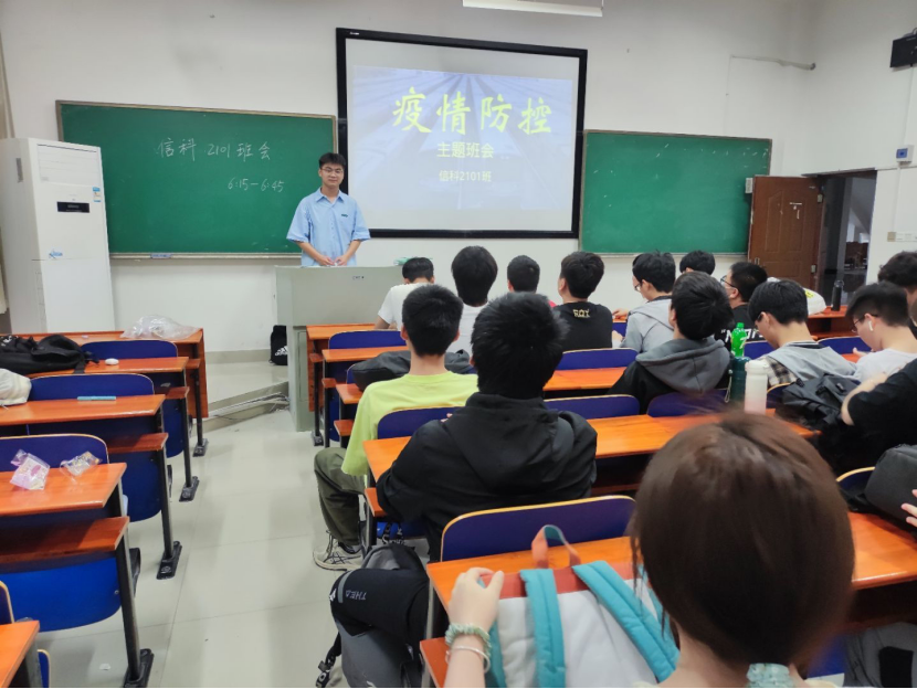 当前全国疫情防控形势严峻,中高风险地区地区增多、确诊病例增多,疫情防控压力增大。为提高同学们的安全意识,配合疫情防控工作,信科2101班于2022年3月15日在教学楼开展了“疫情防控”主题班会活动。