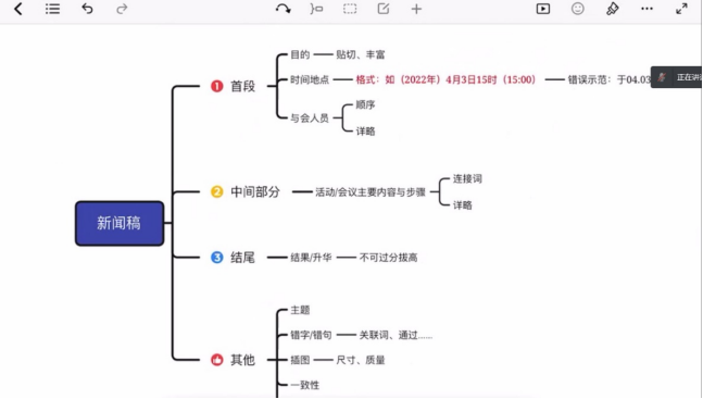 王雅洁学姐展示过后,李欣忆学姐在此基础上加以补充,并讲述了新闻稿撰写的意义所在,让干事们更加深刻地了解到了新闻稿的特点以及本次培训会的意义。