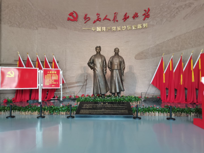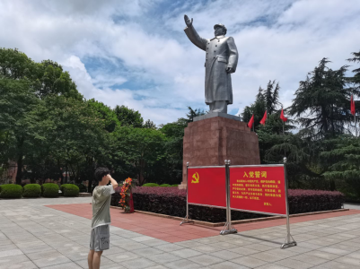 随后,大家来到了中共长沙历史馆。历史馆入口处是毛泽东诗词艺术碑廊,这里的书法作品体现了毛泽东对于传统文化的热情和浓厚的兴趣。接着,实践团来到毛泽东塑像广场,看着阳光照耀下的塑像,实践团成员肃然起敬。队伍中的入党积极分子共同向着塑像庄严宣誓,我们新时代青年不会辜负先辈们的寄托,为民族复兴奋斗终身。