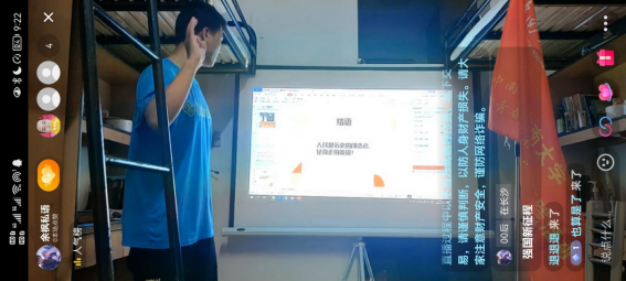 直播于9点正式开始,共分为四个环节。第一个环节由实践团成员向网友们介绍本次暑期社会实践,从活动主题、活动目的、活动内容三个方面进行宣传:实践团队以“青春献礼二十大”为活动主题,前期已经开展了参观党史馆,面向老年公寓老党员宣讲等活动,第一个环节让网友们对实践团有了更加深入的了解。