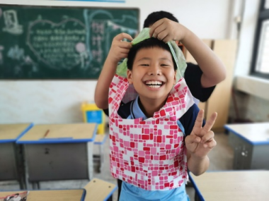 紧接着,学生们在支教老师的协助下,化身为“服装设计师”。借助提前准备好的环保材料,充分发挥想象力和创造力完成了各自的作品。“变废为宝”的过程提高了学生们的动手实践能力,也让环保意识更加牢固地扎根于内心。