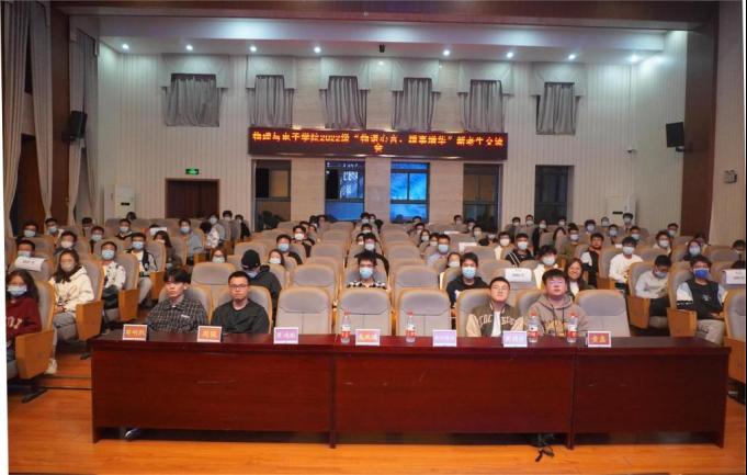 10月30日晚,物理与电子学院在物理楼116报告厅举办2022级“物语心言,踵事增华”新老生交流会。本次交流会线上线下同步进行,邀请了萧鸿猷、周俊、樊明凯、周搏升、黄鑫五位优秀学长为新生们分享经验。2020级辅导员龙欣琪老师和2022级辅导员欧阳旖旎老师及2022级新生参与本次活动。此次交流会由院学生会主席陈炫晔主持。