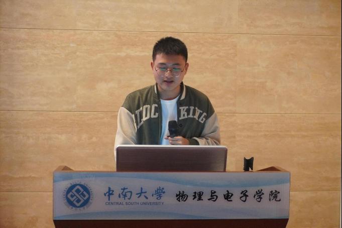 之后,应物专业排名第一的周搏升学长分享了应用物理专业的学习经验,给同学们提出了忠告:要以学习为主、尽量读研、多结交朋友、规划好大学各阶段的学习,并详细介绍了各类竞赛,对参加竞赛的时间和方法给出了自己的见解。