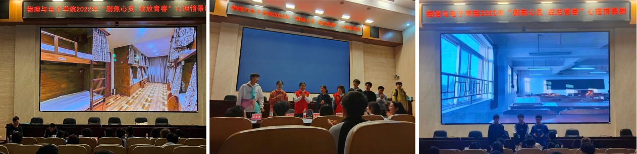 为了展现同学们在生活、学习、交往中的冲突、烦恼、困惑,同时使大家能够学习人际交往的技巧并获得处理问题的灵感,2022年10月30日下午,物理与电子学院“剧焦心灵,绽放青春”校园心理情景剧大赛于物理与电子学院楼116报告厅成功举办,参加此次心理剧大赛的评委有心理专干龙欣琪老师、2022级辅导员欧阳旖旎老师、研究生会长徐明祎、第五届心助会会长陆欣阳、第五届心助会副会长匡方涛、第五届心助会副会长王怡星及大众评委。