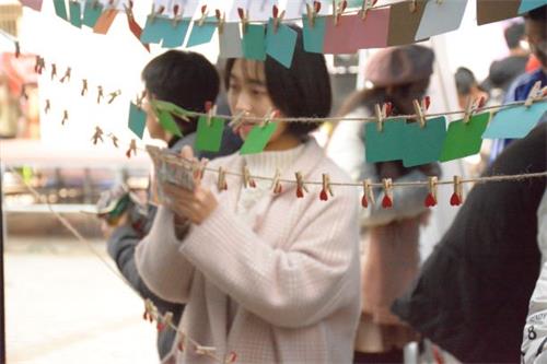 此次人际交往主题活动主要分为四个环节,为“各地方言听听看”、“无敌棒棒糖”、“蒙眼作画”和“故事接龙”,成功通过四关的挑战者们即可获得印章证明与抽奖机会。我院负责“故事接龙”小游戏,预先准备好四个故事的开头,挑战者需要根据开头,将故事续写下去,只要完成一条故事线,即视为挑战成功。游戏过程中,挑战者们开启自己的头脑风暴,为一个个过程曲折,内容新奇的故事添砖加瓦,在寒冷的冬季传递着温暖。