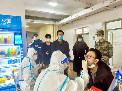 近日,长沙市新增数例新冠确诊病例,疫情防控形势进一步严峻,为响应配合全市疫情防控“上下一盘棋”的行动号召,3月27日上午,我校组织开展第三次全员核酸检测,严格落实疫情摸排。物理与电子学院积极配合学校此次核酸检测工作,具体负责升华学生公寓一栋北、三栋、四栋检测点的组织工作。院党委副书记谢群莅临现场参与核酸检测并指导工作。