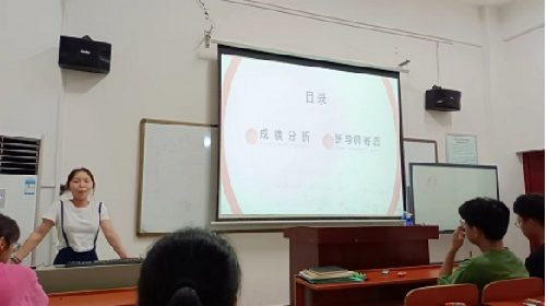 会上,首先由班长张琼做了上学期的成绩分析,班长从化工四个班的班级总体成绩及各班挂科人数进行对比,总结了我班上学期的整体学习情况,又从加权成绩上升或下降人数、四六级报考人数及通过人数两个方面反应了大一一学年来同学们的个人学习情况。最后由孔老师提出班导师寄语,孔老师激励同学们努力学习,提醒大家防范诈骗,并对大家生活中遇到的问题给予建议。同学们都认真聆听。