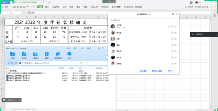 本次会议的主要内容是对2021-2022学年度本科生优秀互助队伍、优秀个人及优秀干部进行评优评审。会议开始前,刘莹莹同学在工作群中公布评分细则,要求参会人员认真阅读,大家积极配合,共同仔细研读评审细则以便开展评审工作。