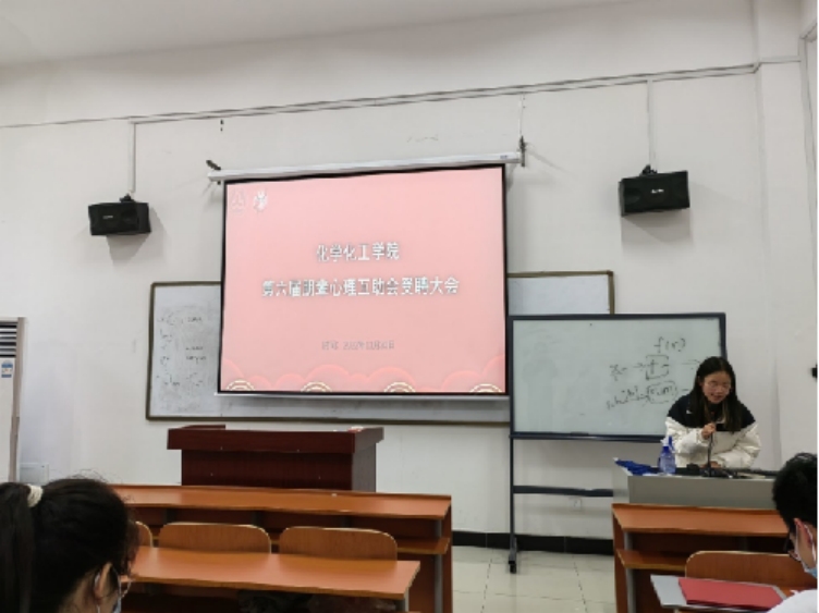 11月30日下午15:00,化学化工学院第六届朋辈心理互助会受聘大会在化工楼125举行。化学化工学院心理专干老师白丹妮老师出席会议,第六届朋辈心理互助会本科生学生负责人刘莹莹主持会议。