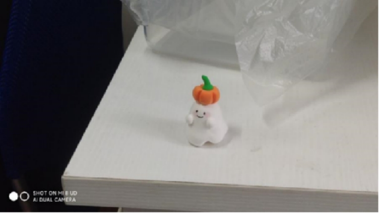 同学们奇思妙想,心灵手巧,创造了众多精美的作品。南瓜摆件萌趣十足,增添了节日气氛;仙人掌盆栽青翠欲滴,富有生气;“痞老板”全身像意态传神,颇有气势。在同学们制作过程中,沈尧同学倾情献技,化语屋中乐声悠扬。制作活动告一段落后,同学们分享零食,交换体验心得。