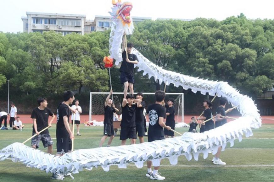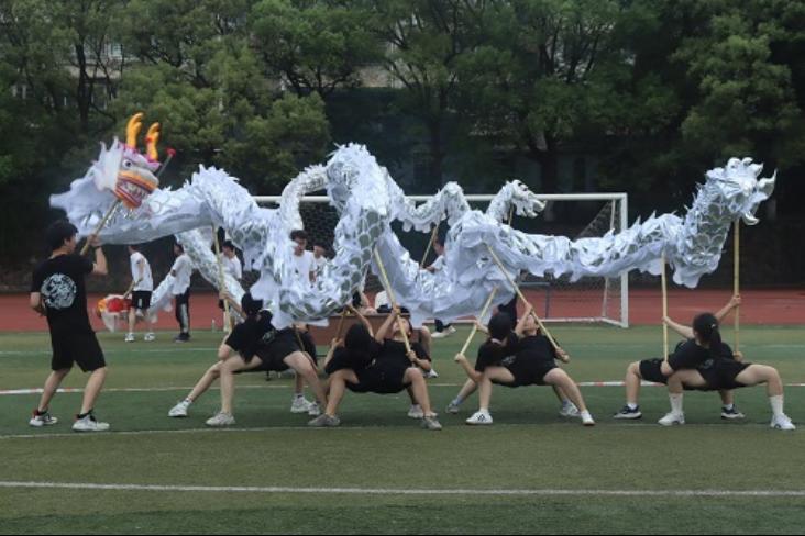 随着比赛开始的号令,竞速赛程迅速开展,各院的舞狮队激情卓越,分秒必争,在紧张的气氛下,进行了精彩的舞龙竞速比赛。间歇休息期间,由击鼓队带来表演,鼓舞了运动员们的斗志。之后下半场比赛开始,各队开始舞龙自选动作表演比赛,与上段竞速赛不同,这一环节评比标准主要是舞狮表演的整体美观性与整齐性,其中男队挑战高难度动作时首次失败后在大家的鼓励与掌声之下再次挑战,最终顺利完成。女队也默契配合,整体表演富有气势,完成了一个又一个高难度的动作,赢得观众以及评委们的连连称赞。