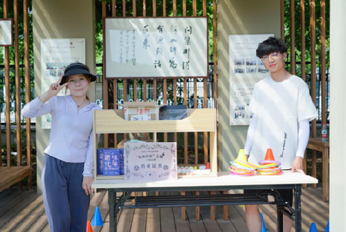 活动开始,同学们在问渠长廊入口处领取集章卡,开启一日魔法师之旅,第一站的旅程包括“大象牙膏”“出神入化”“化个画儿”,同学们可以刺破气球,按照其中书写的配比制作五彩缤纷的大象牙膏,可以与朋友一起运用化学知识争夺化学扑克牌的擂主,也可以在实验服上挥洒画笔,创造“化师袍”。