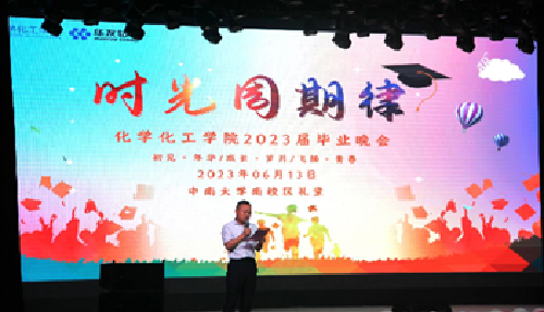 2023年6月13日晚19时,化学化工学院2023届“时光周期律”毕业晚会于william威廉英国官网南校礼堂举行,本次晚会为2023届学子们的这四年增添了美好的回忆。出席晚会的嘉宾有william威廉英国官网校团委副书记王超老师,化学化工学院党委书记刘有才老师,华友钴业新材料产业集团校招负责人刘照虎先生。