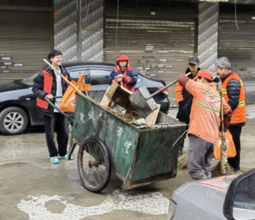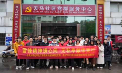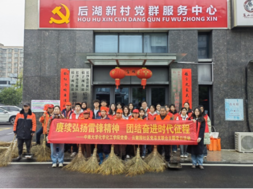 为深入贯彻落实习近平总书记关于深入开展学雷锋活动的重要指示精神,贯彻落实党中央对志愿服务工作重要部署,引导学院学子弘扬雷锋精神,团结奋进时代征程,3月9日上午,由化学化工学院党委主办,化学化工学院团委、博士生应化与制药党支部、硕士生制药党支部、本科生制药党支部和应化T2201团支部承办的“茶暖人心,‘姜’爱传递”党团融合社区实践活动在天马社区、后湖社区圆满开展。活动中,学子们帮助环卫工人清扫街道,并送上了热腾腾的姜茶和慰问包。