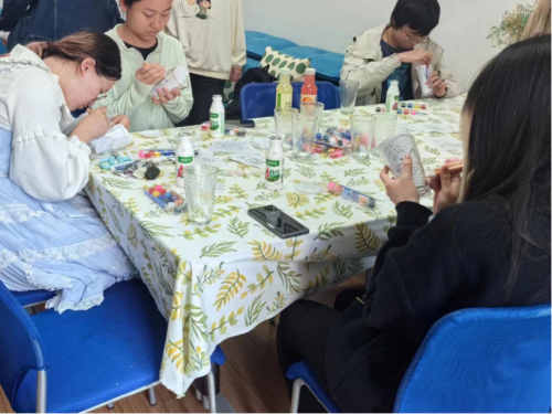 活动过程中,同学们纷纷表示通过自由绘画找到了一种独特的平静,能够忘却一切烦恼,全身心地投入到创作之中。在玻璃杯上进行绘画,也让同学们感到自己变得更加自由、更加充满活力。绘画期间同学们互相交流,共同分享生活中的美好,激发了对生活的热爱。