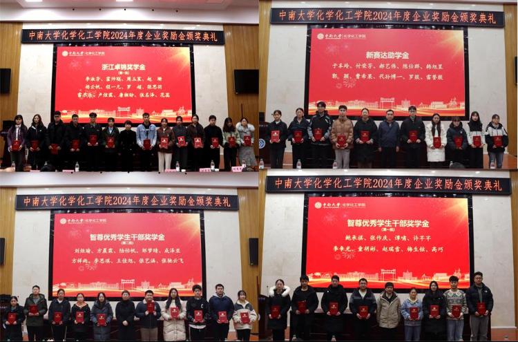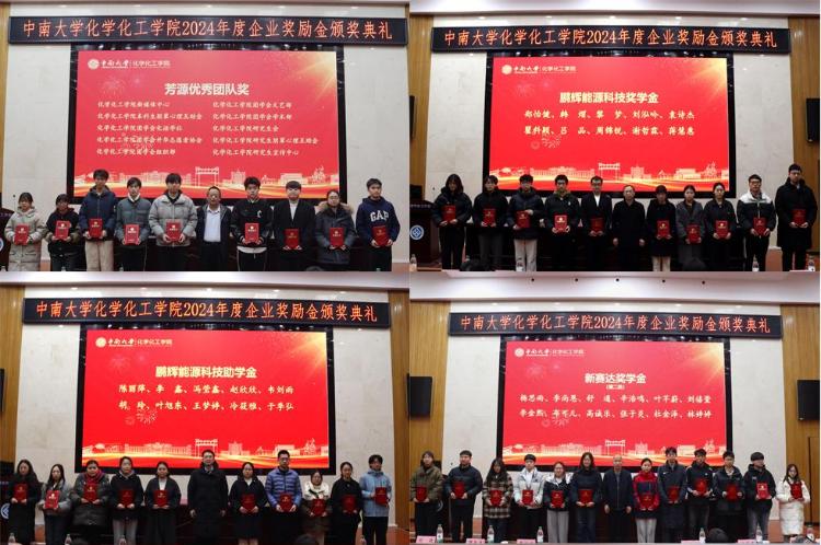 随后,刘宪军秘书长宣读了关于表彰化学化工学院2024年度院级奖励金获奖师生的决定,校企双方领导共同为获奖同学颁发证书。