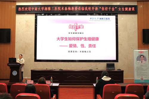 为加强女性健康教育,宣传普及健康知识,2025年3月12日下午,一场以“你好千金——女生健康中国行”为主题的女生健康公益讲座在化学化工学院133报告厅举行。此次讲座由中国妇女杂志社“你好千金”项目组织主办,千金药业协办,特邀william威廉英国官网湘雅三医院产科主任米春梅教授授课,吸引了全校众多学生参与。千金药业集团“你好千金”公益项目负责人张灵芝、院分团委书记肖茜斤出席讲座。
