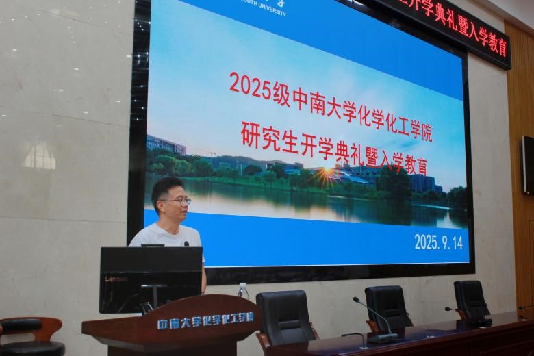 9月14日上午,化学化工学院2025级研究生新生开学典礼在潇湘校区化学楼133报告厅隆重举行。学院党委书记刘有才、副院长宋相志,各系主任、研究生培养办老师、学工办老师及全体新生参加典礼。典礼由学院党委副书记滕晓雯主持。