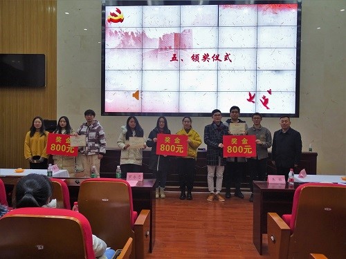 活动伊始,罗永忠老师上台致辞,他结合当前中国共产党成立一百周年的背景,介绍了学习党章党规党纪和“四史”的重要性,并祝愿在场党员赛出好成绩。竞赛分为笔试和抢答两个环节,最终成绩取其成绩总和。首先进行笔试环节,以填空题的形式考察在场党员对党章党规党纪和“四史”有关知识的理解与记忆,党员们奋笔疾书,在考试中复习相关知识;紧接着进行抢答环节,党员们迅速抢答,精准回答,现场气氛十分活跃。紧张激烈的抢答过后,便进入猜红歌、唱经典环节,党员们积极举手抢答,将现场气氛推向了高潮品。最后,活动在颁奖典礼及在场党员和嘉宾的合影留念中落下帷幕。