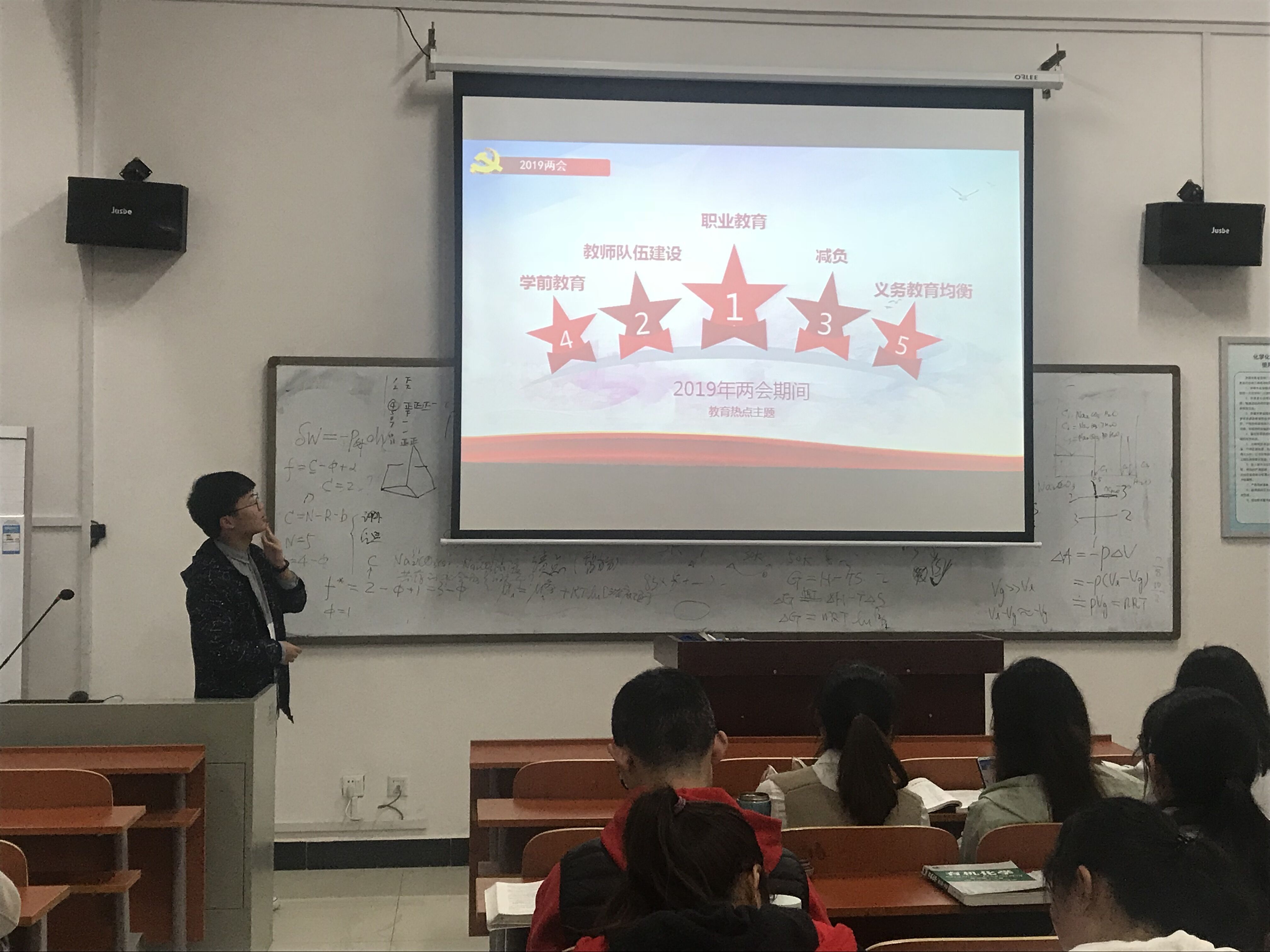 活动前期,为了使主题能深入成员的心,两个班级于活动前一天讨论好了主题班会的具体流程,邀请了来自两个班级的两位同学给同学们围绕2019党上台的政策上了两节丰富有意义的活动动员课,深入了解此次班级活动,对此次班级活动的意义有更深的认识。