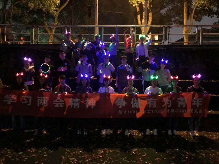 2019年4月14日晚21点,化工1702、统计1801和计算机1812三个班以“学习两会精神,争做有为青年”主题班级活动为契机,在南校操场共同举办了“荧光夜跑”活动,本次活动旨在提高成员的身体素质,为争做有为青年打下一个良好的基础。