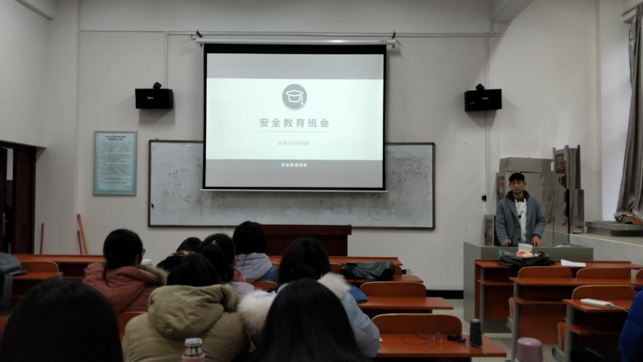 为了提高大家的安全防范意识,杜绝危害人身安全的事件发生,应化1505班于1月7日下午16:00在化学楼123教室顺利开展了以安全教育为主题的班会,辅导员杨宵老师出席。此次班会由班长夏杭主持,全体同学共同参加。