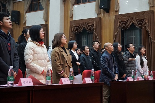 活动伊始,全体起立齐唱团歌后。接着,第十四届研究生会主席李佳阳做出工作总结及未来展望,白丹妮老师宣读研究生会成员名单并颁发研究生会聘书。紧接着,由团学会主席项赢尔对开学三个月以来的工作进行了汇报总结并对未来的工作未来进行了展望,理清了三个月以来团学会的工作脉络。汇报结束后,由华绪雨老师宣读团委学生会成员名单、张沛毅老师宣读化语桥综合素质提升中心名单。并由刘有才副书记、范帆老师、杨佳老师分别为学生干部颁发聘书。在聘书颁发完成后,由组织部部长罗旭森带领全体学生干部宣誓。体育部部长屠焓钰、化语桥素质提升中心干事王艺超分别讲述任职心得。