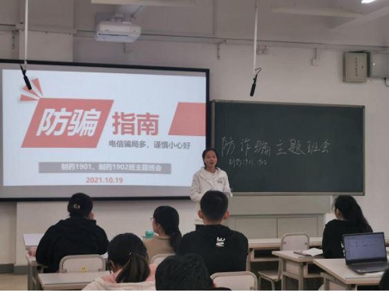 为响应“全民行动,无诈星城”的号召,10月19日下午15:50,化学化工学院制药1901班和制药1902班在新校区A315教室联合举办了防诈骗主题班会,两班共46位同学参加。