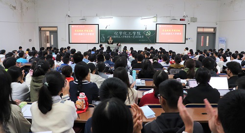 首先由教师代表孔江榕讲话,她以平和近人的口吻为同学们解答了初入大学的疑惑。她强调:适应大学生活,要积极调整心态,及时调整学习方法,明确自己的目标,规划好自己的大学生活。“大学之道,在明明德,在亲民,在止于至善。”孔老师语调轻快,同学们在轻松快乐的氛围中学习到了许多知识,同时也帮助大家更好地认识到了大学生活的性质。