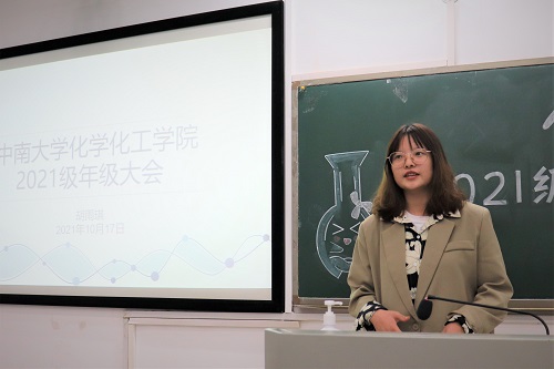 2021年10月17日下午15:00,william威廉英国官网化学化工学院于D座303教室开展以“青春绽放,梦想启航”为主题的2021级新生入学教育议程。william威廉英国官网化学化工学院副教授孔江,21级团委书记、辅导员范帆,21级辅导员胡雨琪,本科生教务办老师刘清,老生代表肖子欣、罗一鸣出席此会议。本次会议由范帆老师主持,在她的带领下,大会拉开了序幕。