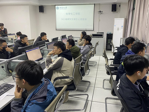 为进一步提高化学化工学院新生心理健康教育工作的针对性和实效性,加强大学生心理危机预防和干预工作,了解新生的心理现状,化学化工学院2021年10月20日在新校区化学楼209机房进行了2021级学生的心理普测工作,共有249名硕士研究生和博士研究生参与本次测评。