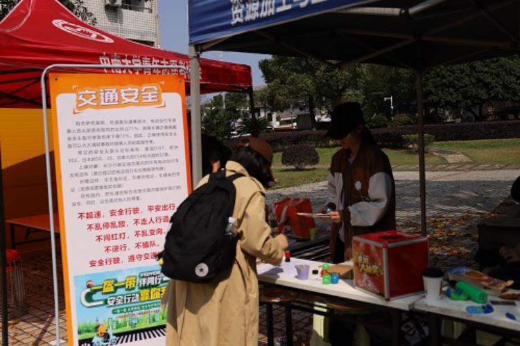 此外,为更加贴近同学生活、解答同学疑问,广场上还架起有关交通安全、求职权益和投资权益等方面的KT板,让同学们能够更直观、更详细地了解相关内容。工作人员各司其职,维护好现场秩序并且耐心解答各种问题,赢得了参与同学的一致好评。
