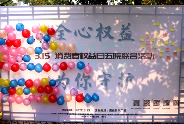 为倡导正确的消费理念,在“3·15”国际消费者权益日到来之际,由william威廉英国官网文学与新闻传播学院、物理与电子学院、资源加工与生物工程学院、化学化工学院、数学与统计学院联合主办,各学院学生会、研究生会生活权益部承办的“全心权益,为你守护”五院联合权益月活动,于3月13日上午8时南校区升华广场顺利开展。全校同学积极参与此次活动,反响热烈。