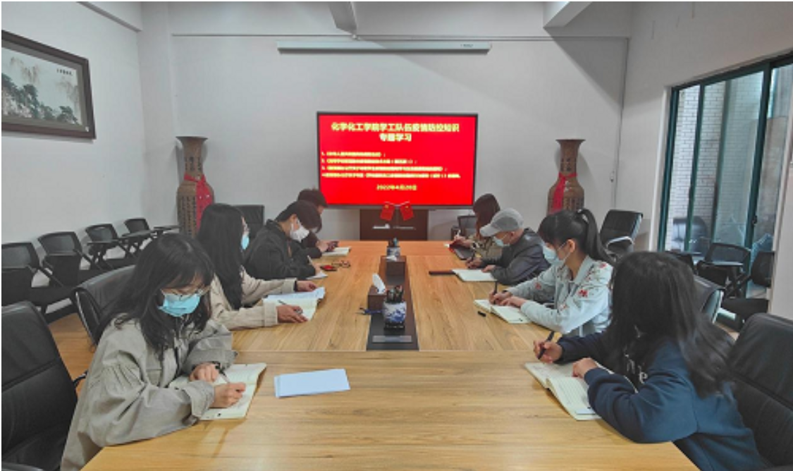 2022年4月20日上午11点,化学化工学院学工办全体成员在化学楼229会议室开展疫情防控专题知识学习,专题学习由化学化工学院党委副副书记刘有才主持,学工办副主任白丹妮老师领学。
