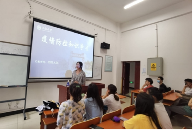 为落实学校新冠肺炎疫情防控培训的重要指示,4月27日下午16时,化工2002班于化工楼124开展疫情防控知识学习及防疫志愿经验分享班会,通过防疫培训增强同学们的疫情防控意识,促进同学们掌握防护方法,并号召同学们践行疫情防控要求。