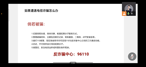 在讲座的最后,黄行长再次提醒大家下载国家反诈中心APP,擦亮双眼,明辨诈骗本质,防患于未然。在遭遇电信诈骗时不要惊慌,及时拨打96110报警,理性冷静地处理。讲座圆满结束,同学们纷纷表示受益匪浅。