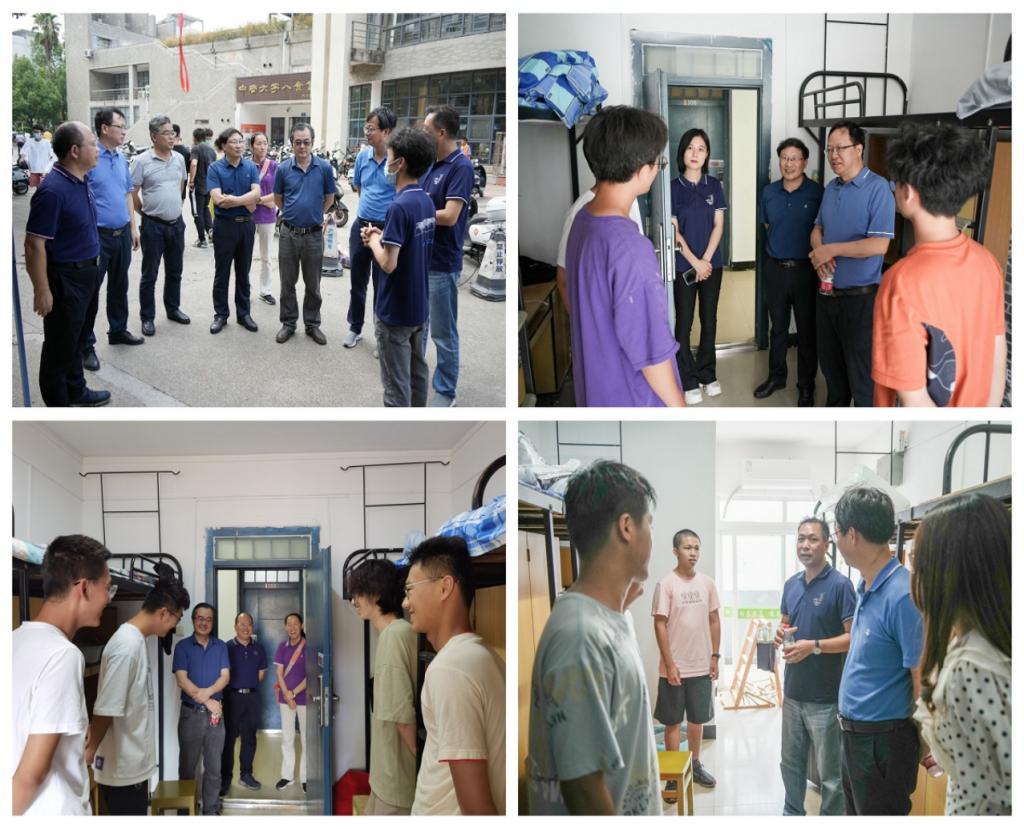 首先,领导们一行前往南校区2栋报到点、21栋接待点,详细了解迎新组织工作和新生报到情况,对各项迎新工作给予充分肯定,并对参与迎新的师生表达亲切问候,叮嘱大家要严守疫情防控要求,明确职责、通力合作,妥善做好服务保障,高质量完成新生报到各项工作。