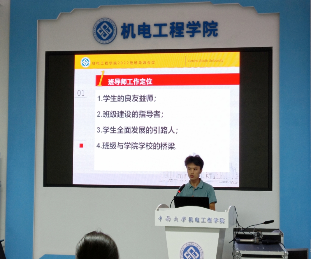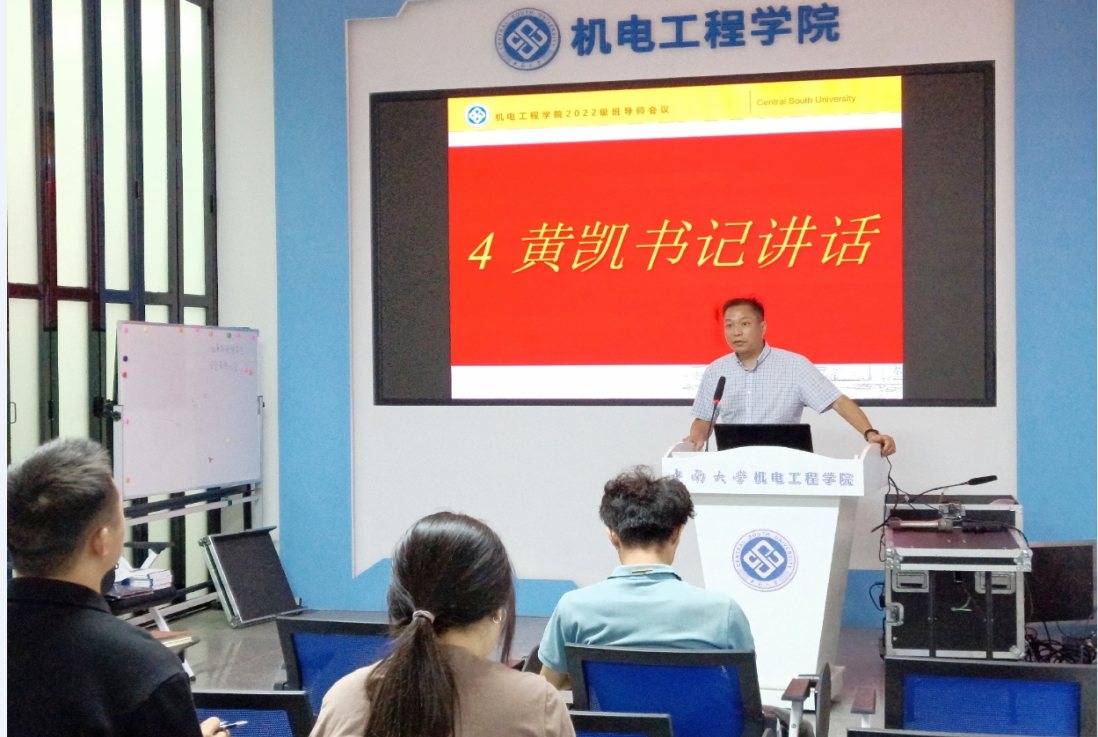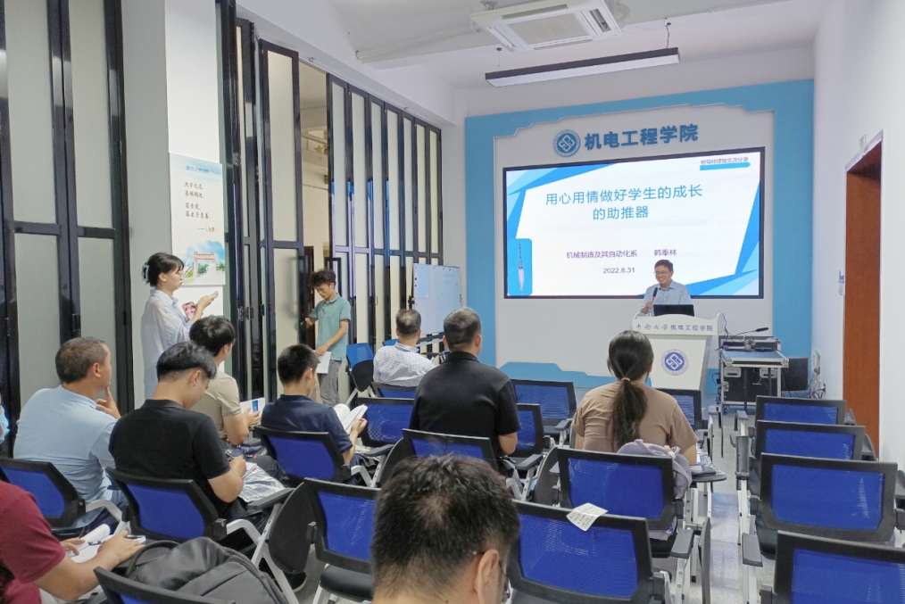 8月31日下午,机电工程学院2022级新生班导师会议在机电楼知新阁顺利举行。机电工程学院党委副书记黄凯、机械制造与自动化系副主任韩奉林教授、学校心理健康教育指导中心谭鑫老师、全体2022级新生班导师参与本次会议,会议由2022级本科生辅导员黄奎主持。