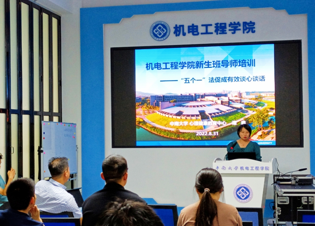 随后,谭鑫老师做了《“五个一”法促成有效谈心谈话》主题培训。她从大学生心理常见问题、与学生及其家长沟通技巧等方面展开,以诙谐的语言、巧妙的互动等方式,向班导师分享了大学生当前面临的主要心理危机、师生沟通障碍等问题,并分享了她及时发现并解决常见心理问题的宝贵经验,从心理学角度帮助新生班导师更好了解学生心理动态与有效沟通技巧。