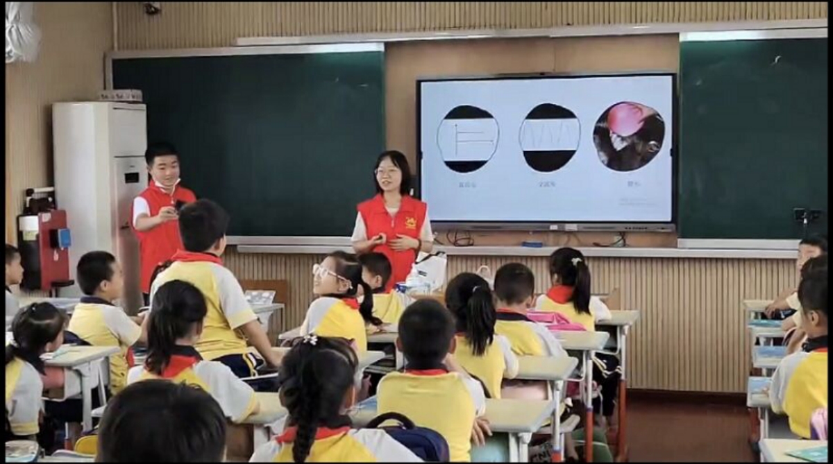 走入学校,志愿者讲师张晗同学首先展示了“会飞的大蜘蛛”实验,凭借一个塑料袋完成了一个看上去不可思议的魔术,点燃了小朋友的热情,吸引小朋友们的注意,勾起了他们的好奇心。接着,小朋友们开始激烈地讨论着,讲述着各自的看法,在志愿者的引导下,开始走近静电,了解静电。随后,志愿者运用生活中的小细节带领小朋友们去认识电,加深对电的认识。在张晗讲师的授课中,小朋友们了解到了静电、直流电、交流电的特点与区别,对生活中各种与电相关的现象有了更进一步的领悟。在交流环节,小朋友们分享了生活中接触电的有趣小故事。
