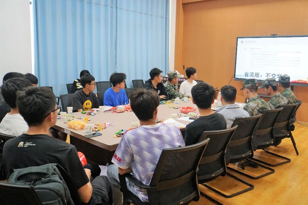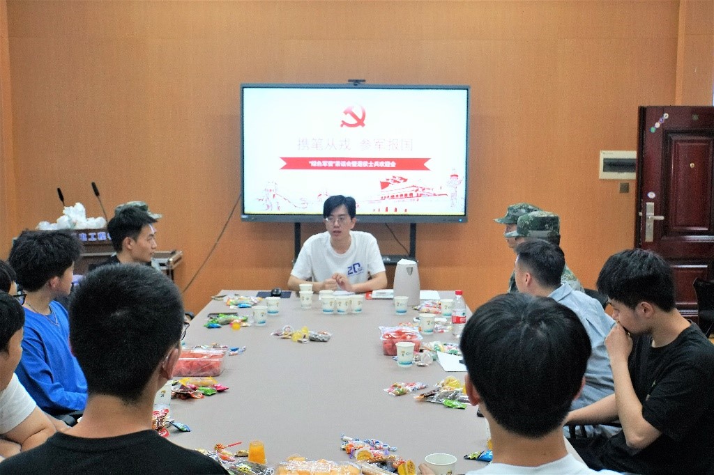 为更好地宣传入伍政策,让同学们细致地了解部队生活,做好退役士兵的服务工作,让退役士兵尽快融入大学生活,机电工程学院于5月24日下午在C202会议室开展了“绿色军营”茶话会暨退役士兵欢迎会。机电工程学院国防教育专干宋宁宇,退役士兵刘亚帅、刘富华、徐奇奇、隋雨轩、杨子豪以及十余名意向入伍同学参加活动。