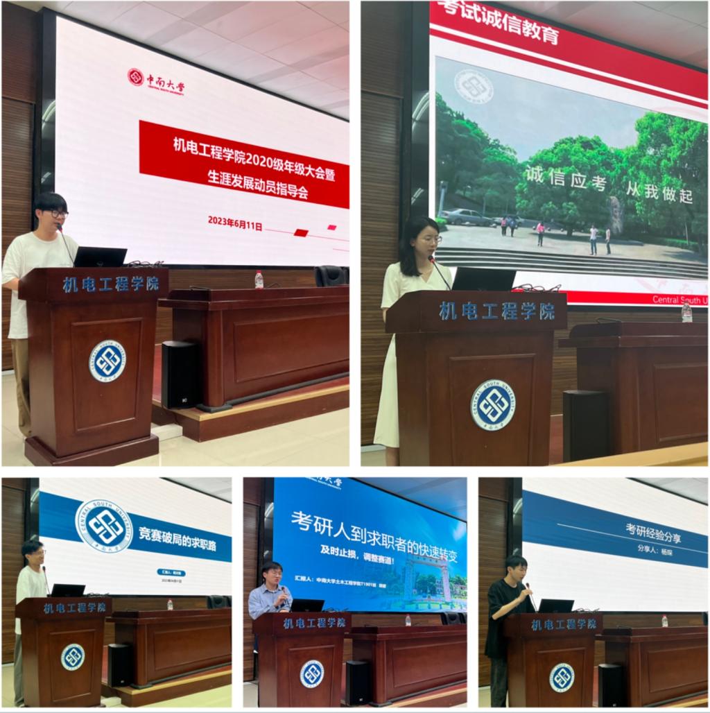 6月11日晚上,机电工程学院2020级本科生年级大会暨职业生涯规划指导会在中铝科技大楼B214报告厅顺利举行。2020级辅导员张悦、欧阳瑜,校就业指导中心朋辈生涯互助团成员韩文刚、胡健,机电工程学院2019级学生杨琛以及490余名学生参加大会。