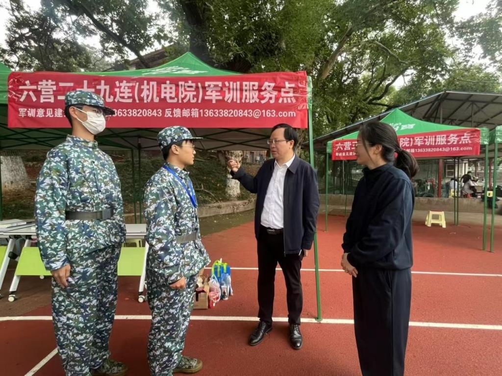 10月21日下午,机电工程学院党委书记肖来荣、党委副书记李玲芝、副院长孙小燕以及学工办副主任麻朋威一同前往南校区操场看望慰问新生,并向带训教官致以诚挚问候。