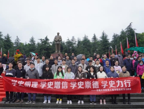 2021年4月11日,机电工程学院研机制一支部党员及入党积极分子到韶山、花明楼开展了“学史增信”党史学习教育现场教学和体验活动。本次活动通过参观伟人故里,寻访伟人足迹,聆听老一辈无产阶级革命家的故事,使党支部成员们接受红色革命教育。