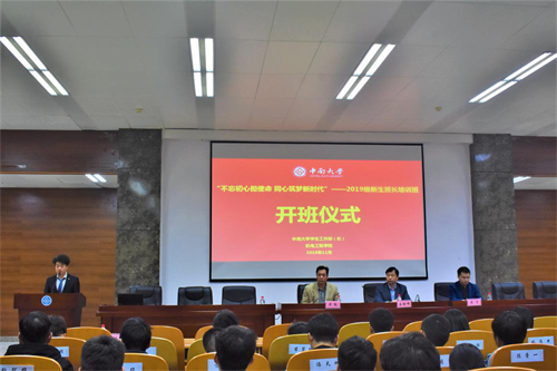 11月9日上午8时,由我校学生工作部(处)主办、我院承办的“不忘初心担使命,同心筑梦新时代”2019级新生班长培训班开班仪式在中铝科技大楼B214报告厅顺利举行。学生工作部易险峰副部长,机电院党委黄凯副书记,学生工作部蒋宁老师出席仪式。我校全体本科2019级新生班长参加仪式。仪式全程由付彪老师主持。