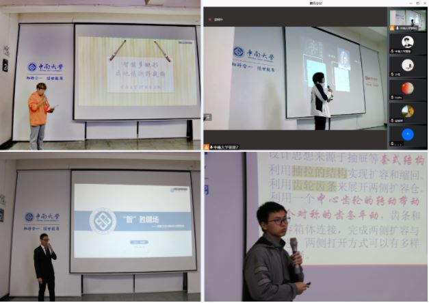 11月21日下午,机电工程学院与国防科技大学智能科学学院联合举办的“璇玑”科技文化节机械工程创新创意设计大赛暨机器人科技文化节“智”胜疆场工程创意设计大赛决赛在学院“书香中南·文润机电”育人基地顺利举办。受疫情影响,本次答辩采用线上直播和线下答辩相结合的方式开展,设置了机电工程学院分会场和智能科学学院分会场。机电工程学院吴万荣副院长、云忠副院长、唐进元教授、韩奉林副教授、何玉辉副教授,辅导员黄奎、章佳琪出席大赛并担任评委。