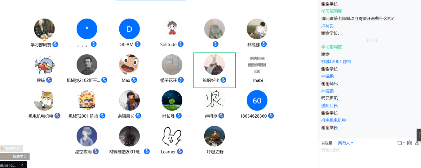 活动最后,同学们意犹未尽,针对保研、直博等问题提出自己的疑惑,二位嘉宾给予了详细耐心解答,并鼓励同学们努力学习,多尝试、多思考、多总结,力争取得优异成绩,实现人生理想。