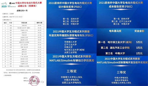 2022年5月14日-6月3日,由中国科学技术协会指导、中国汽车工程学会主办的2021蔚来杯中国大学生电动方程式大赛(FSC)在线上顺利举行。6月19日,颁奖典礼在北京举行。机电工程学院方程式赛车队在电车赛事中获得全国一等奖,并突破性地斩获设计报告第三名、成本报告第三名、年度优秀传播团队、蔚来黑马奖第三名、MATLAB/Simulink车辆动力学仿真三等奖、MATLAB/Simulink控制策略开发及软件实现三等奖等单项奖项。